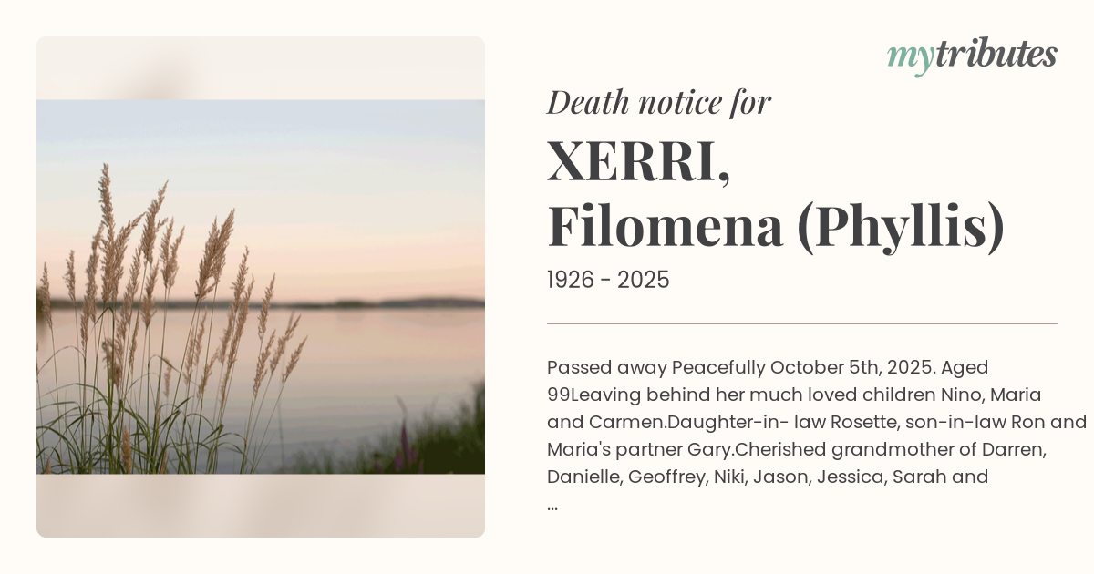 16°CPassed away Peacefully October 5th, 2025. Aged 99