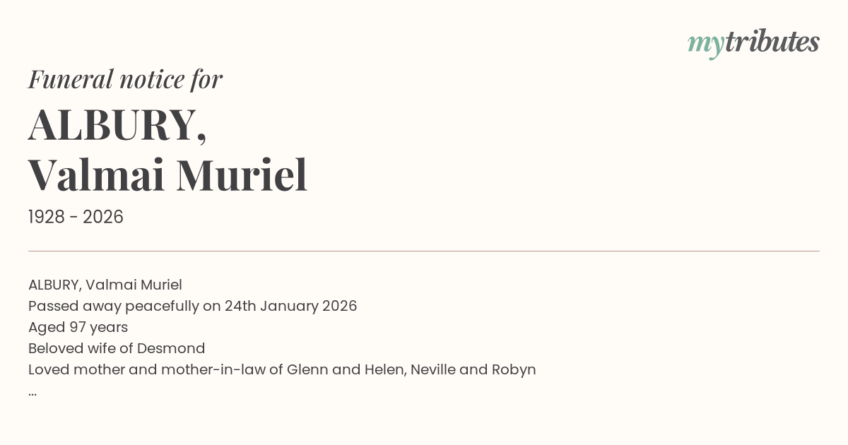 Passed away peacefully on 24th January 2026