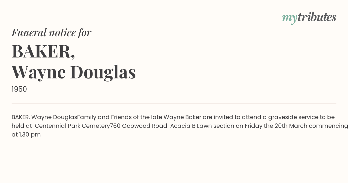 Family and Friends of the late Wayne Baker are invited to attend a graveside service to be held at