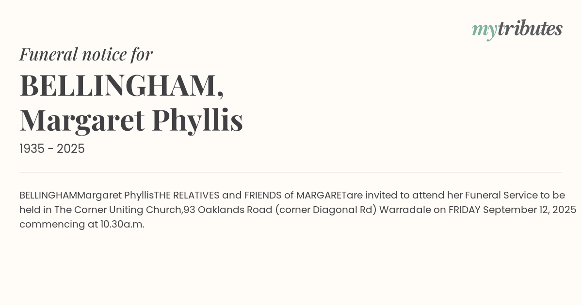 are invited to attend her Funeral Service
