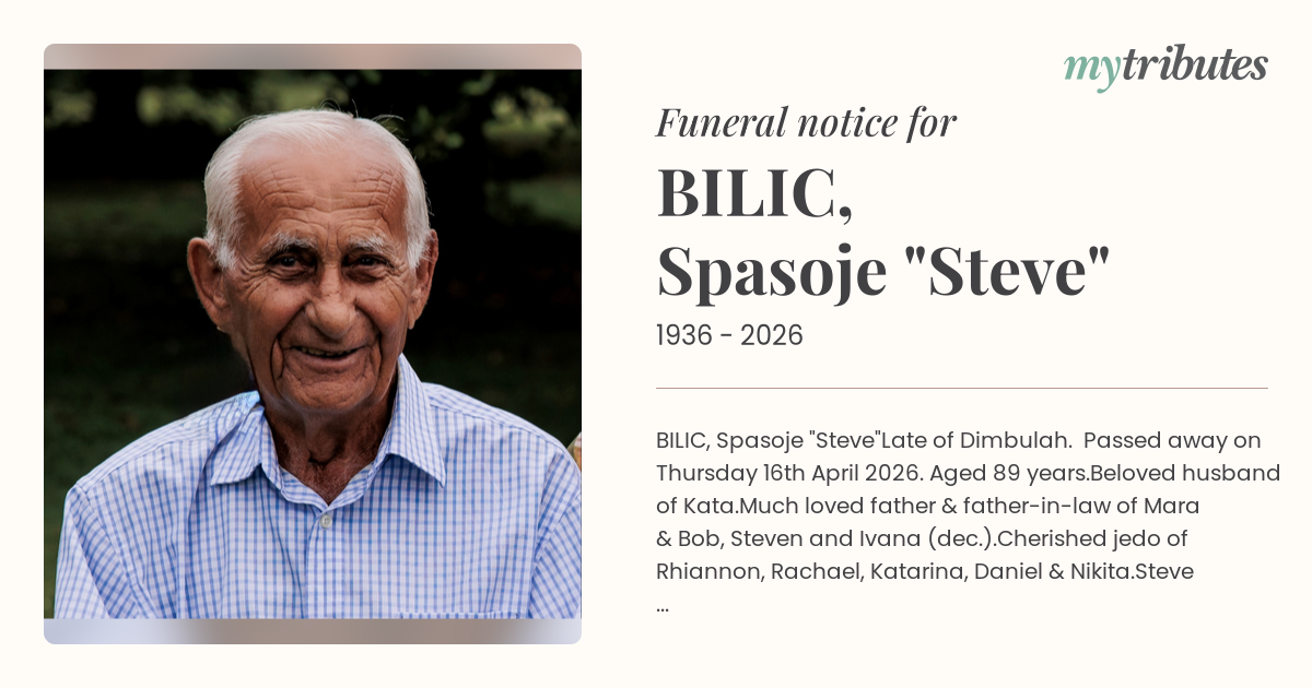 Relatives & friends of Steve are respectfully invited to attend his funeral service which will be held at St Anthony’s Catholic Church Dimbulah on Monday 27th April 2026. Service commencing at 11.00am. Followed by interment at Dimbulah Cemetery.