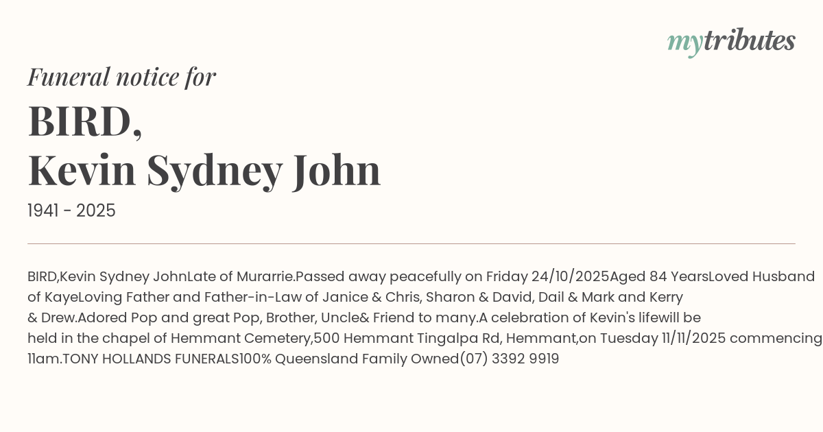 Passed away peacefully on Friday 24/10/2025
