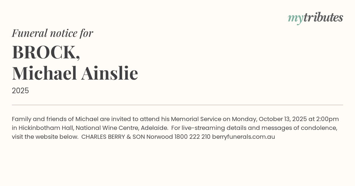 16°CFamily and friends of Michael are invited to attend his Memorial Service on