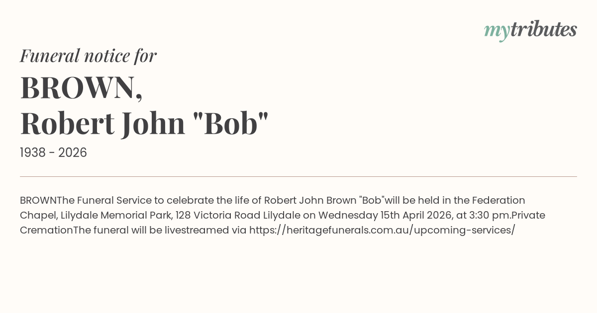 The funeral will be livestreamed via https://heritagefunerals.com.au/upcoming-services/