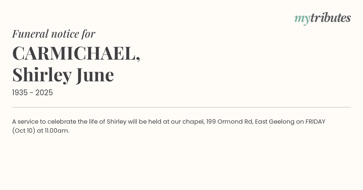 16°CA service to celebrate the life of Shirley will be held at our chapel,