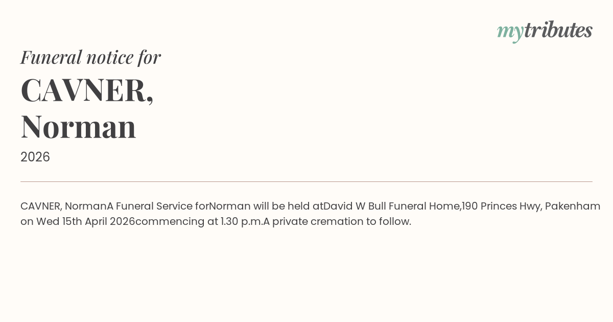 Funeral by : David W Bull Funeral Directors Pakenham