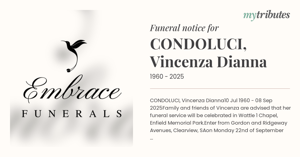 Family and friends of Vincenza are advised that