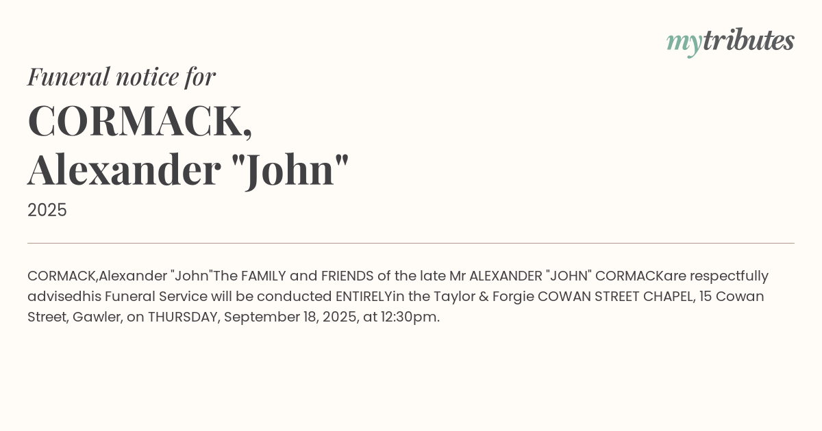 The FAMILY and FRIENDS of the late Mr ALEXANDER "JOHN" CORMACK