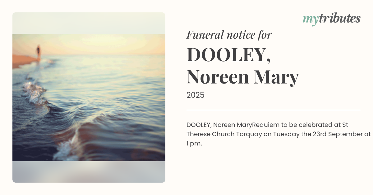 Requiem to be celebrated at St Therese’ Church Torquay on Tuesday the 23rd September at 1 pm.