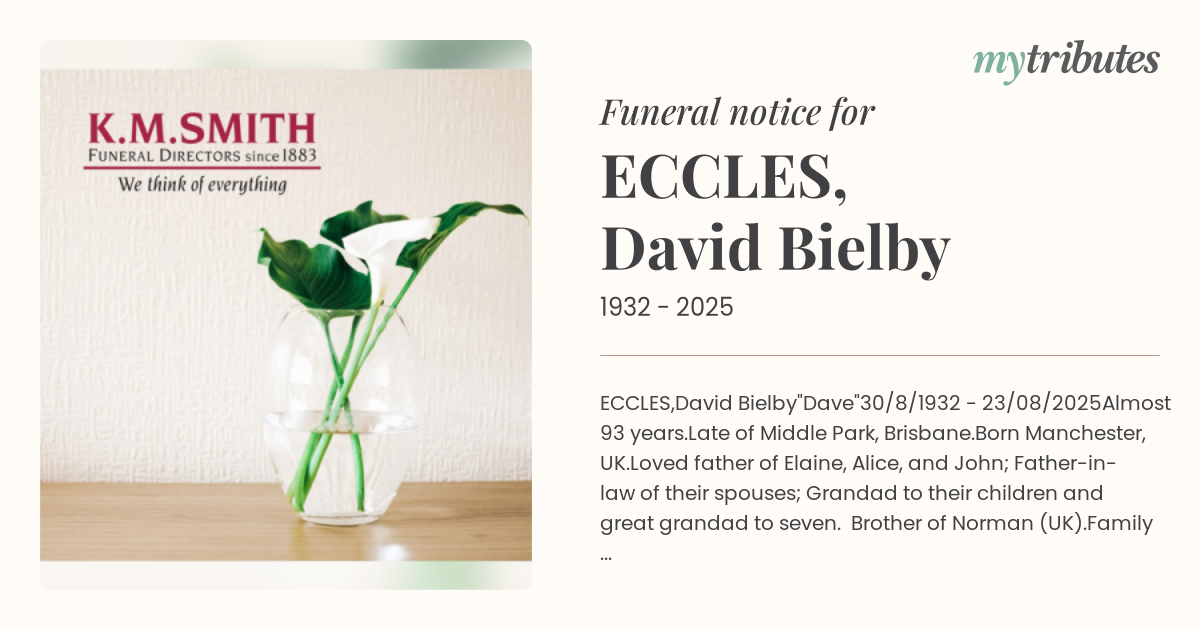 Family and friends are warmly invited to attend Dave’s funeral service to be held in the Federation Chapel of Centenary Memorial Gardens, Wacol Station Road, Sumner, on Monday 8th September, commencing at 12.00 p.m.