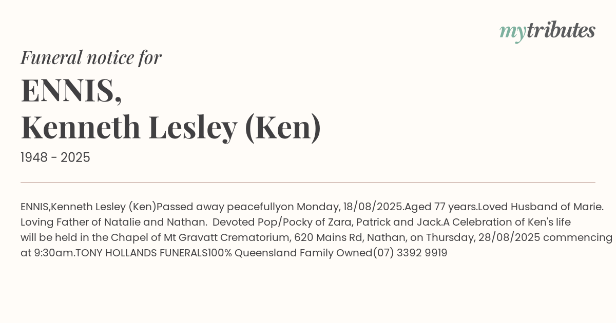 A Celebration of Ken's life will be held in the