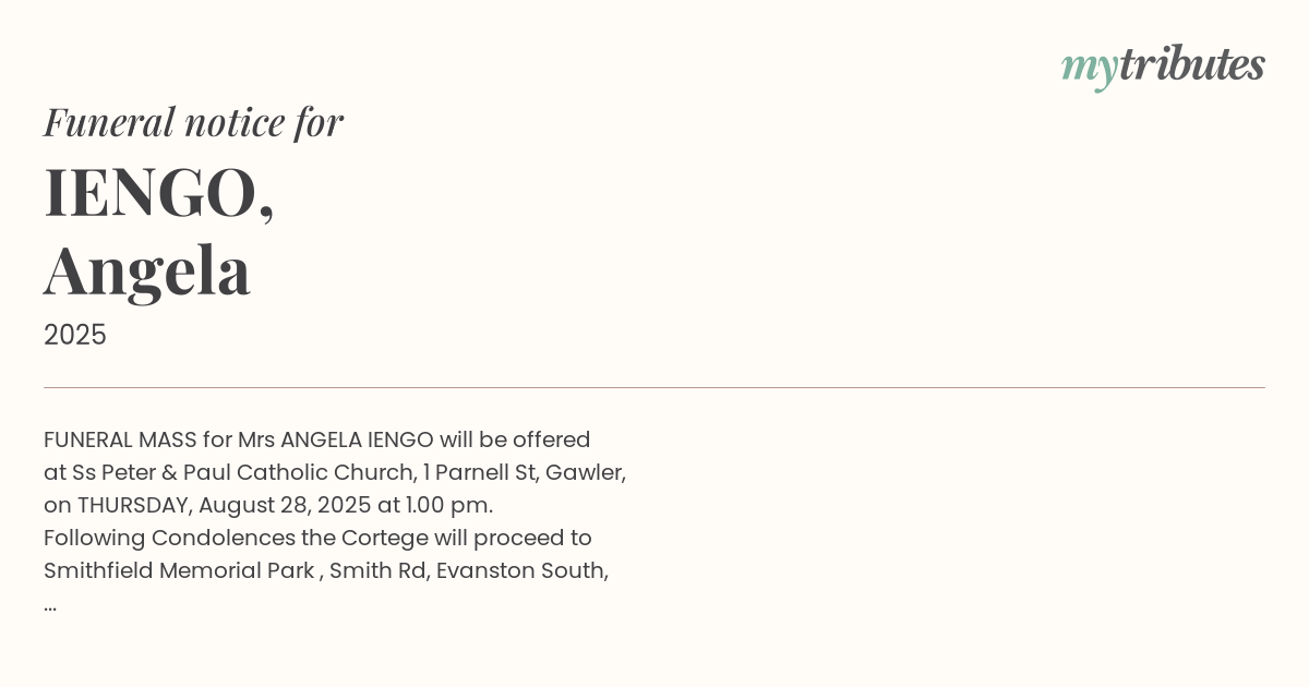 16°CFUNERAL MASS for Mrs ANGELA IENGO will be offered