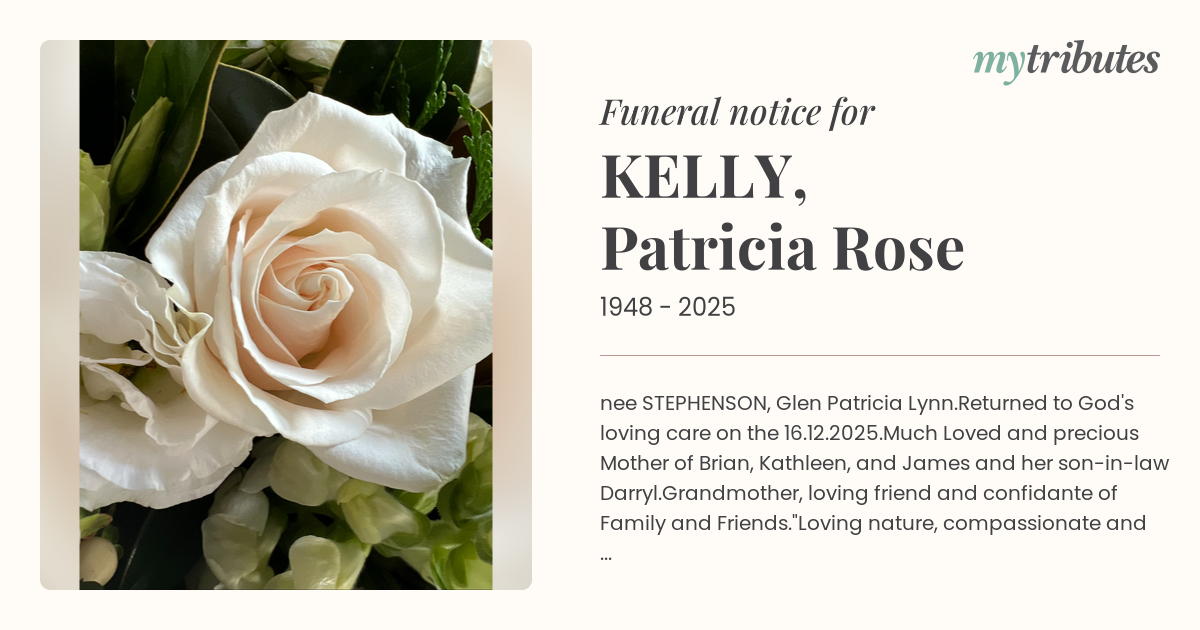 Family and friends are warmly invited to attend a celebration of Patricia's life on 9.01.2026 at the Hemmant Cemetery Chapel at 11am.