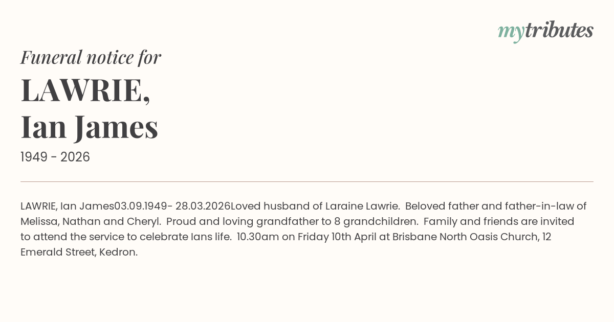 Family and friends are invited to attend the service to celebrate Ian’s life.