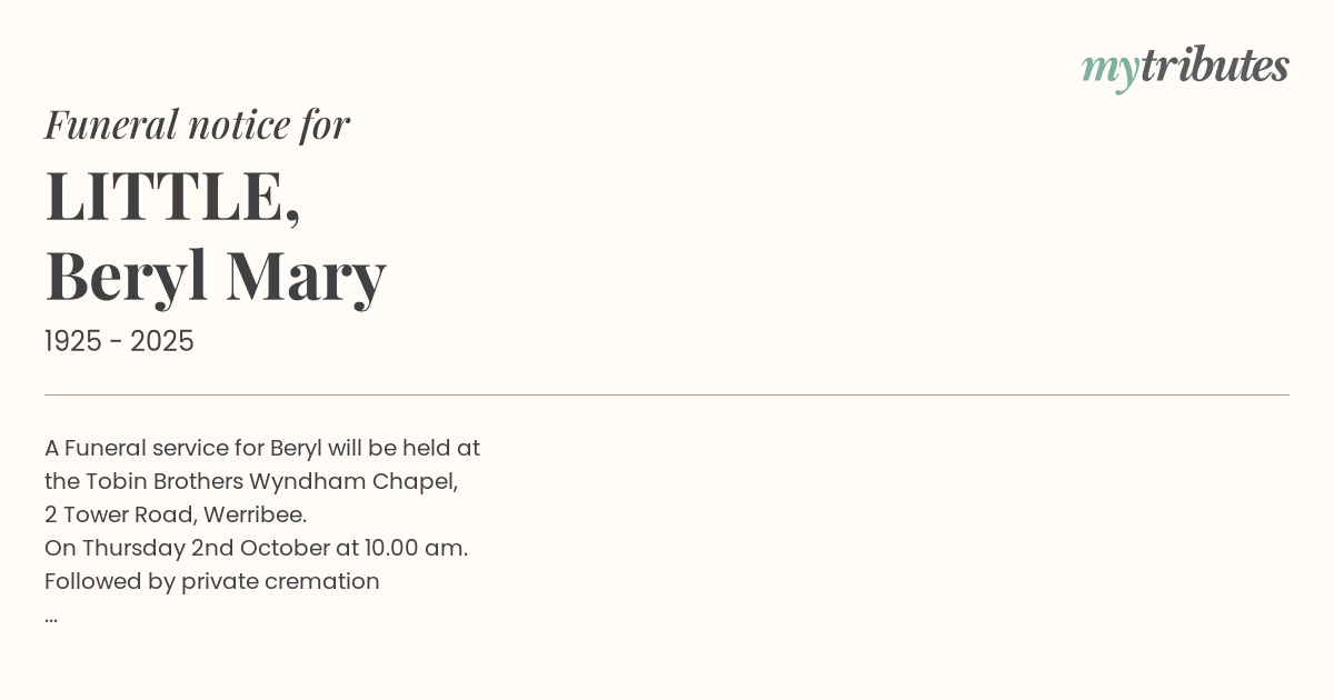 16°CA Funeral service for Beryl will be held at
