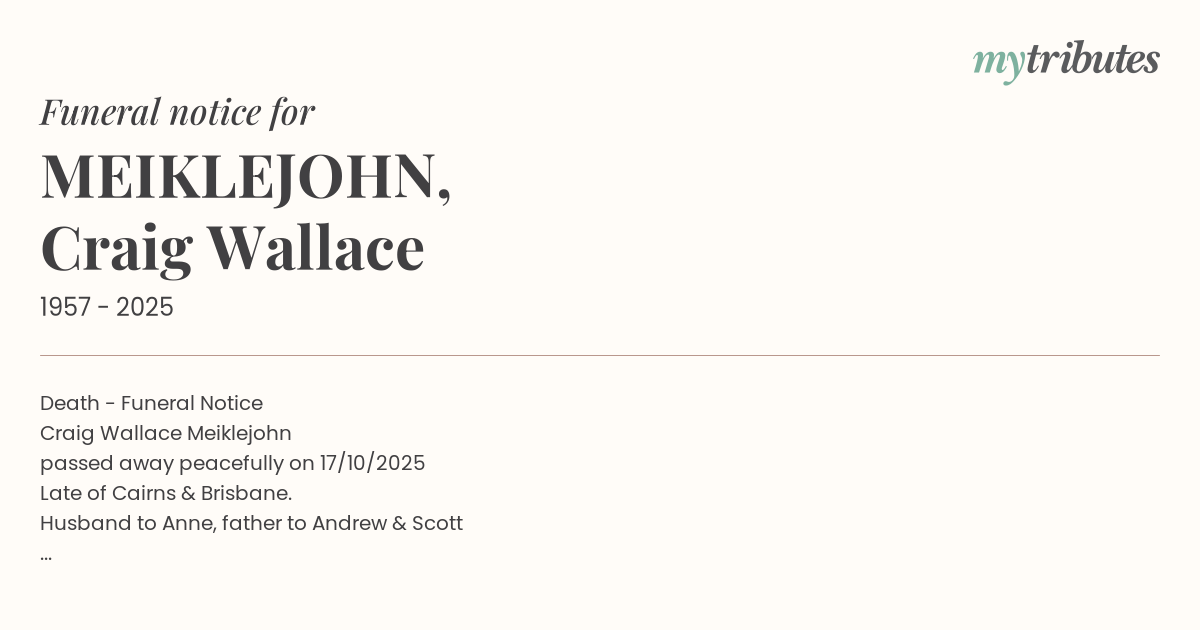 Relatives and friends are invited to attend a chapel service on 07/11/25 at 10:30 a.m. GHM Funerals, Kelvin Grove. A celebration of life held afterwards 12 noon.