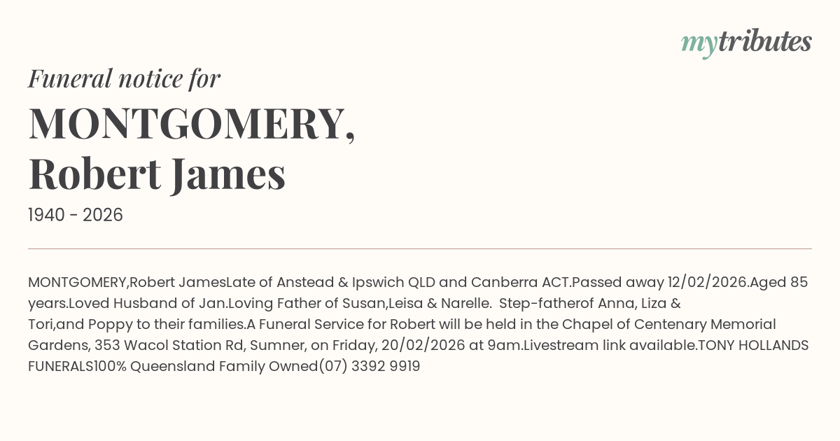 Late of Anstead & Ipswich QLD and Canberra ACT.