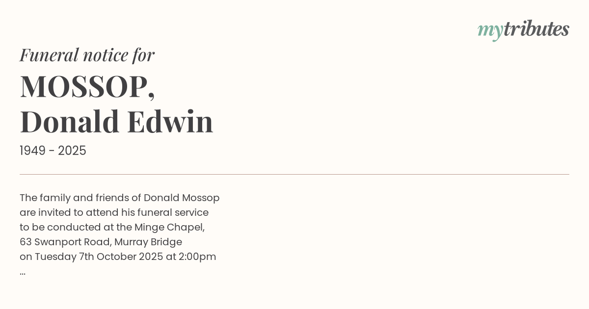 16°CThe family and friends of Donald Mossop