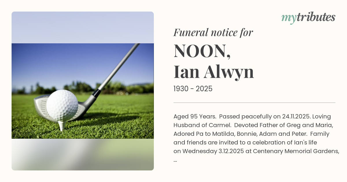 Family and friends are invited to a celebration of Ian's life on Wednesday 3.12.2025 at Centenary Memorial Gardens, 353 Wacol Station Rd, Sumner to begin at 10.30am.