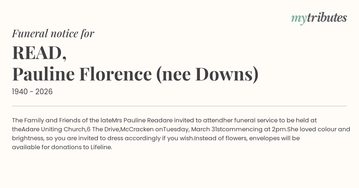 Mrs Pauline Read