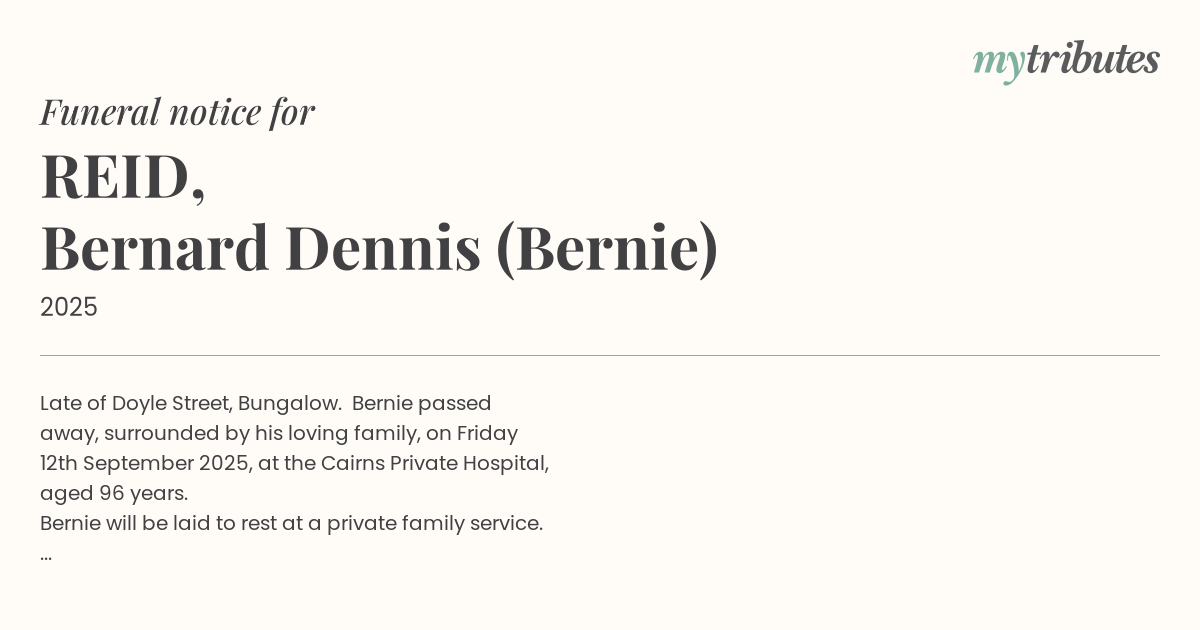 Bernie will be laid to rest at a private family service.