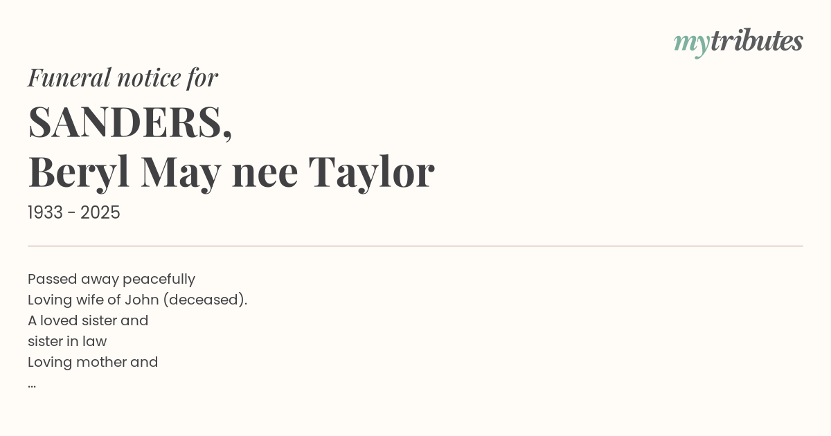 Family and friends of Beryl are warmly invited to attend a celebration of her life, to be held in the