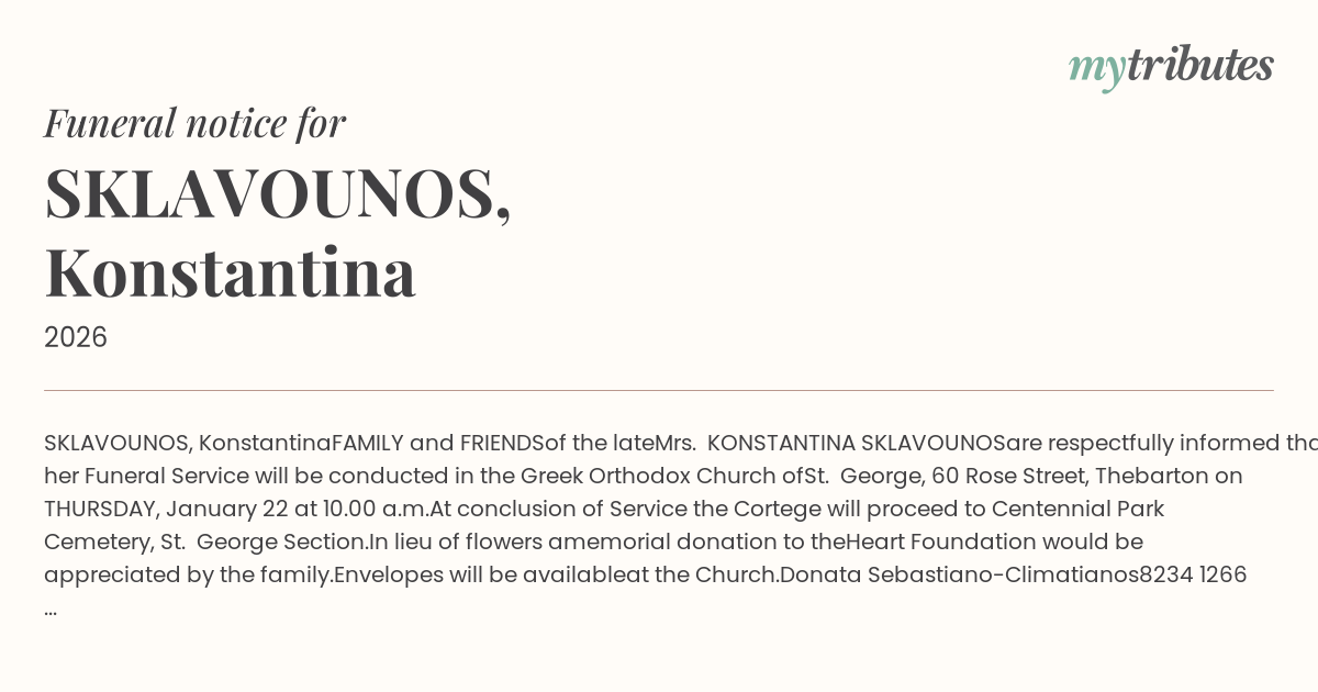 are respectfully informed that her Funeral Service