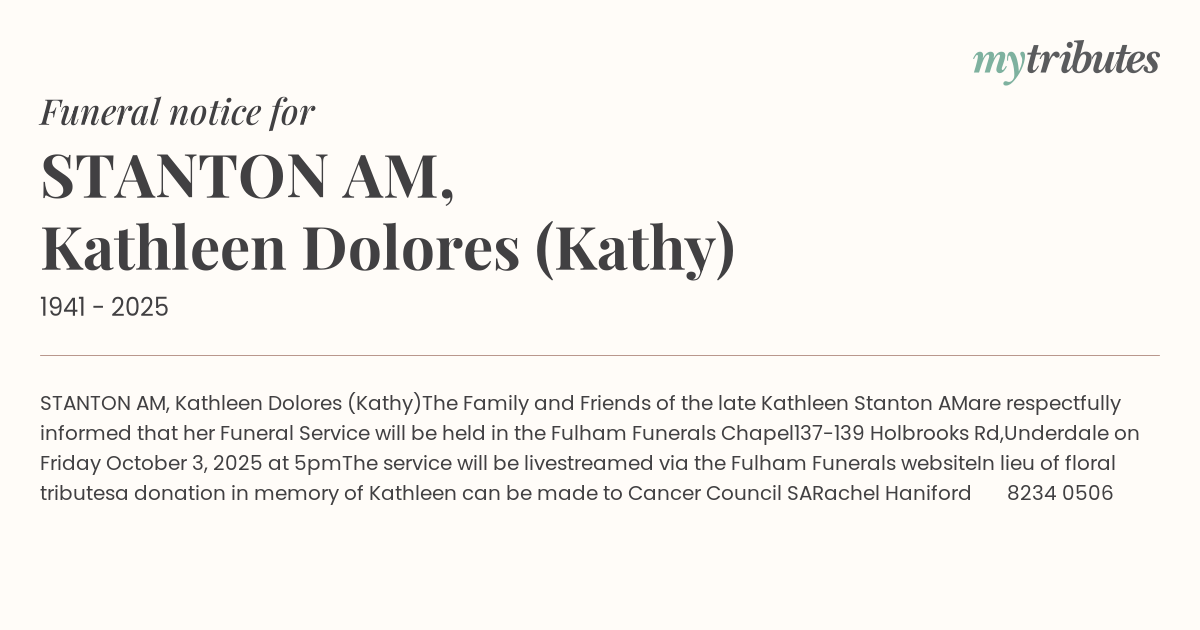 16°CSTANTON AM, Kathleen Dolores (Kathy)