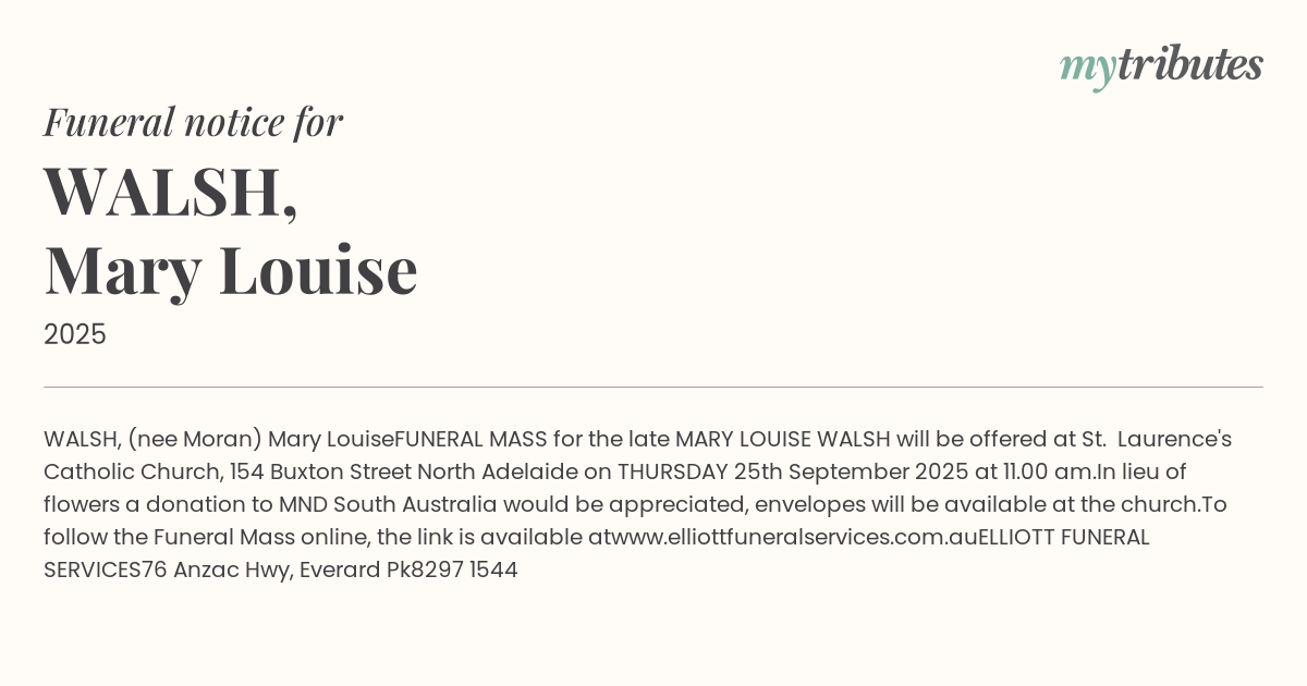FUNERAL MASS for the late MARY LOUISE WALSH