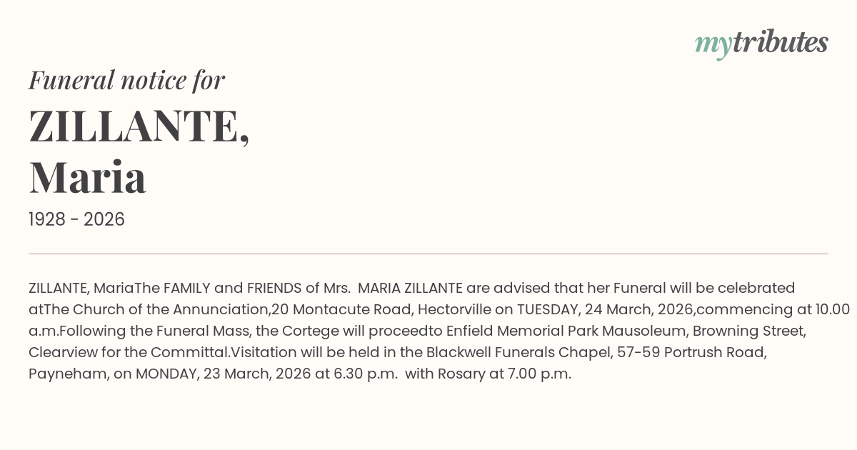 Mrs. MARIA ZILLANTE